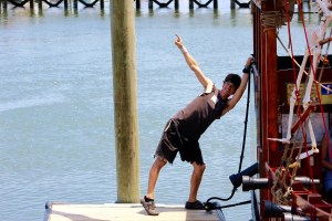 Let me give you the time line low down! So First you leave from where ever you’re staying, I’d recommend at least 30-45 minutes for travel… Traffic gets crazy around here, especially this time of year. So you’re driving down the road, probably following your GPS, and finally you arrive or maybe get lost, if you get lost you can just call me (843x839x4665) and I’ll get you here. So you arrive and park in the gravel lot directly across from the Dead Dog Saloon and then you walk towards the front doors of the restaurant to find the ship store where the fun begins! Once you make it to the ship store you get checked in, get your cool pirate merchandise, and head over to the deck for some face-paint! Our crew gets you painted/tatted up, gives you an awesome pirate name, and marches you down to the Sea Gypsy! Now your children are real pirates, raising the flags, battling the enemy, and finding treasure! From start to finish you are with us for about 90 minutes in total (not including your travel time)!